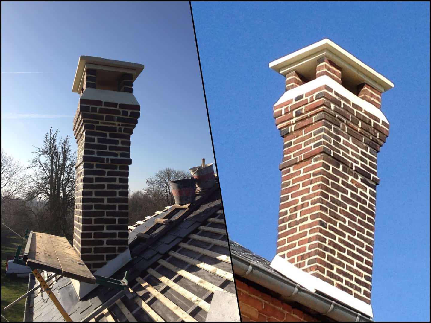 Cheminées rénovée (Solins, zinc, chapeaux, joints)